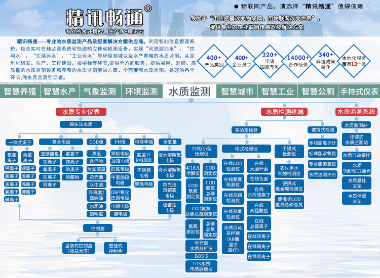 精訊暢通致力于物聯網傳感器改善水質環境及大氣環境,提供易用、準確、高質量的水質檢測儀,水質監測系統,VOC在線監測系統,大氣微觀站,油煙在線監測設備和完整的水質監測解決方案以及網格化大氣監測解決方案,全面覆蓋水質監測、大氣環境監測,為環境的和諧發展貢獻出自己的一份力。